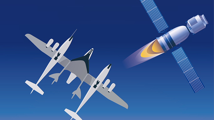 (LR) 第二种双机身构型设计的商业太空旅行图解,以及第一种飞行进入空间站的太空旅行图解/CFP